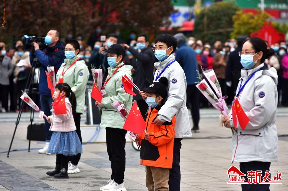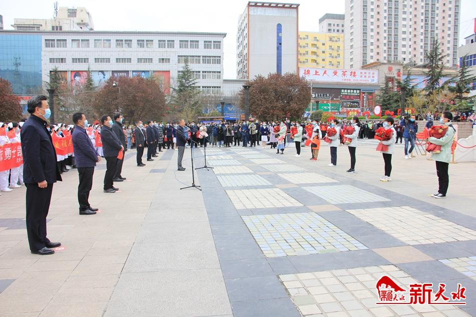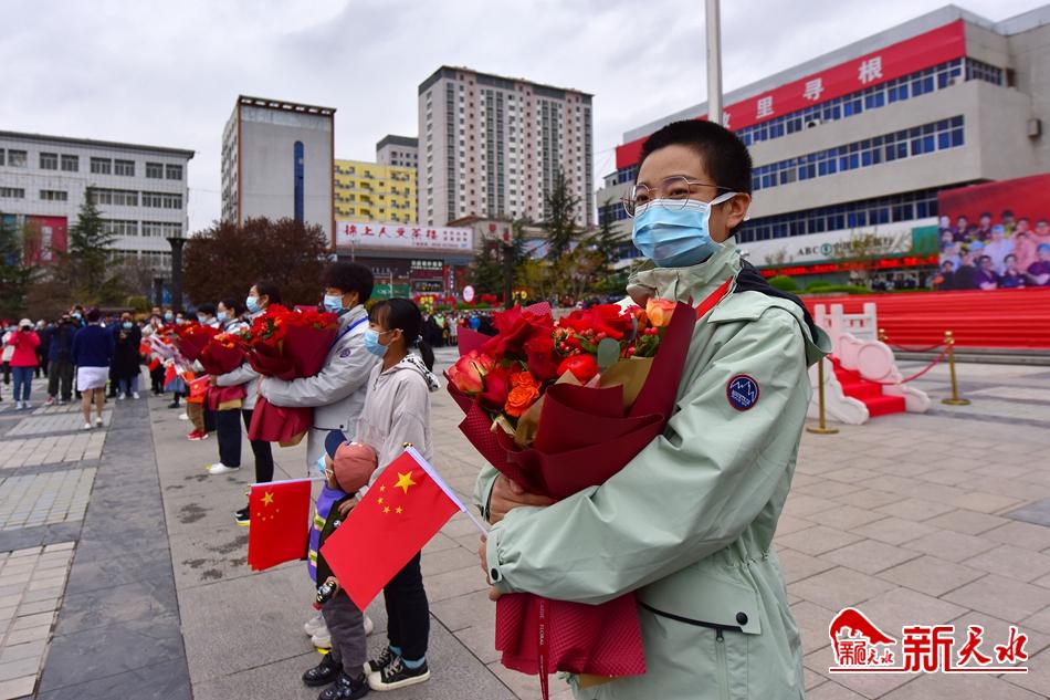 “你们主动请缨、逆行出征,是‘为武汉拼过命的战士’,是最美丽的‘天水人’。你们不顾危险、忘我工作,参与守护了一座城、一个国,是新时代最可爱的人。你们身处前沿阵地,把天水儿女的好品质、好作风、好形象、好口碑留在了荆楚大地。你们是天水的形象使者,是全市广大党员干部和群众学习的榜样。”欢迎仪式上,市委书记王锐代表市四大班子和370万天水人民向首批凯旋的医护人员表示热烈欢迎,同时,也向奋战在抗疫一线的全市医护人员致以崇高敬意。