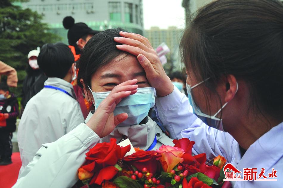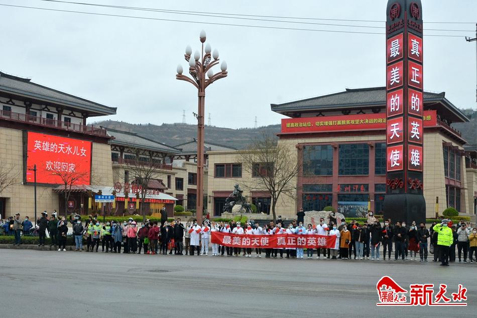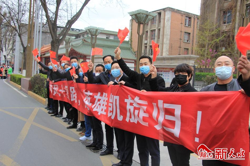 4月1日下午,天水驰援武汉的医护人员返程,他们一踏上家乡的土地,就受到了家乡人民的热烈欢迎。