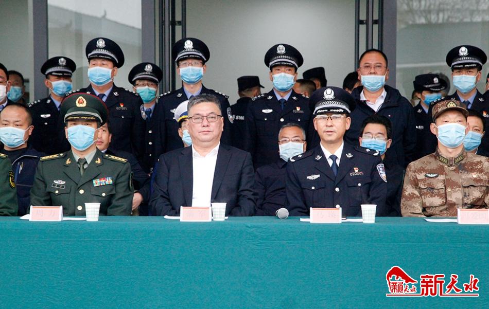 市委常委、政法委书记蒲军,副市长、市公安局局长马瑛等观摩演练。