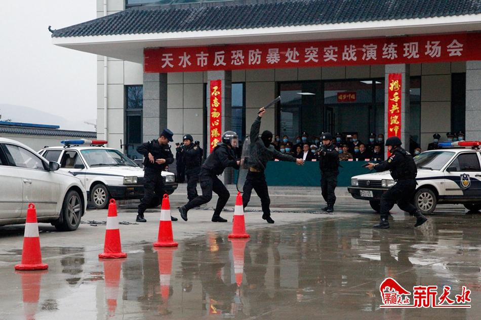 新天水讯【天水日报记者李旺旺】4月2日,全市反恐防暴处突实战拉动演练在市公安局反恐防暴特警支队院内举行。