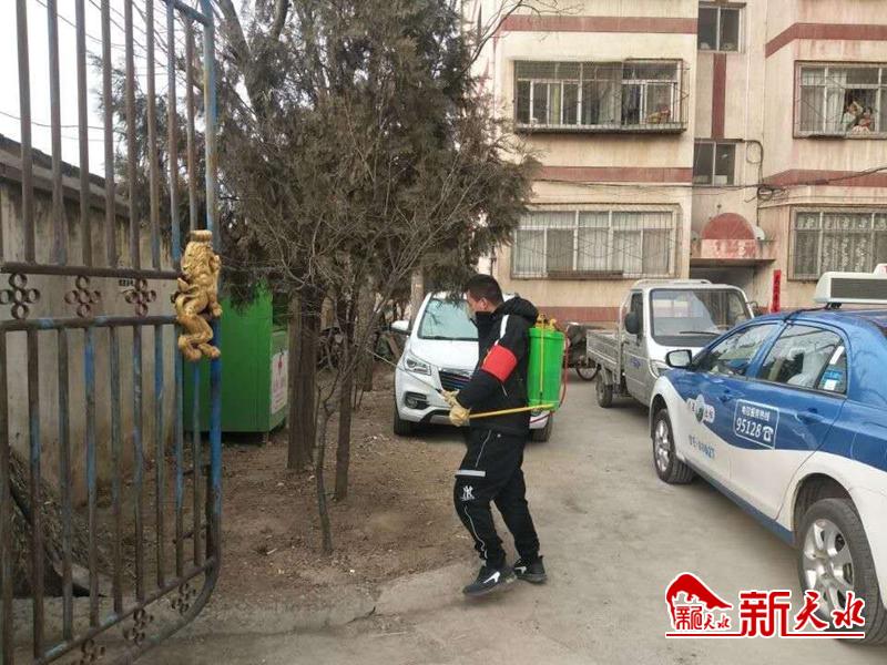 七里墩社区志愿者认真开展公共场所消杀工作
