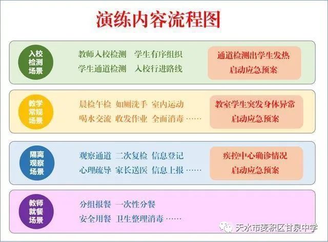 3月31日,校委会制定《甘泉中学开学前新型冠状病毒肺炎疫情防控工作演练方案》