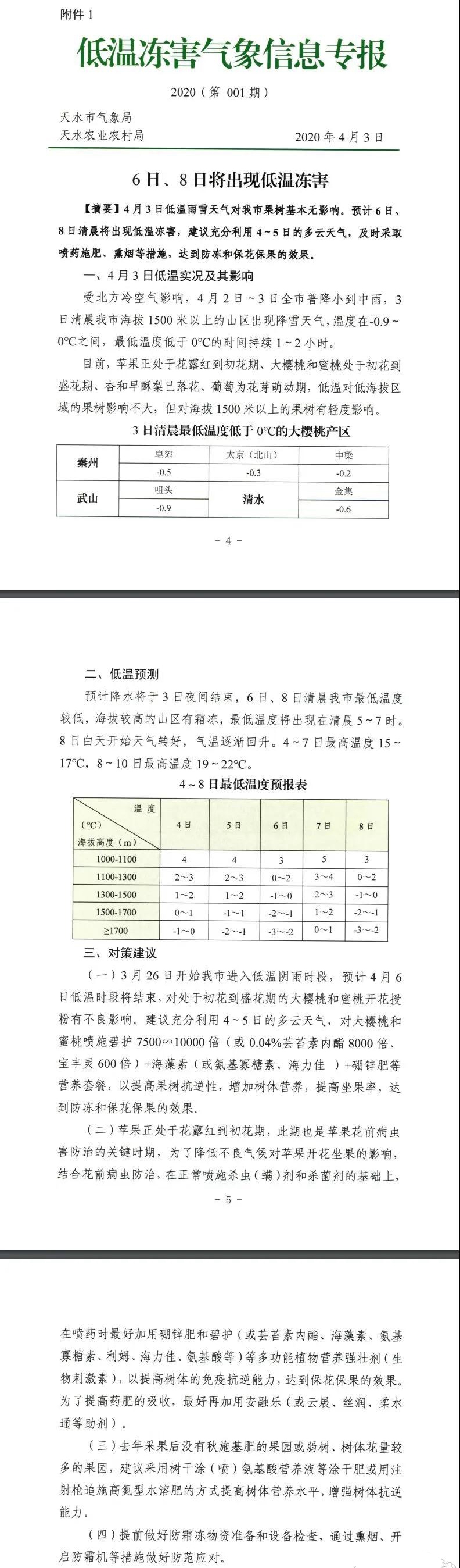 天水市关于防范应对4月6日8日清晨低温冻害天气的紧急通知