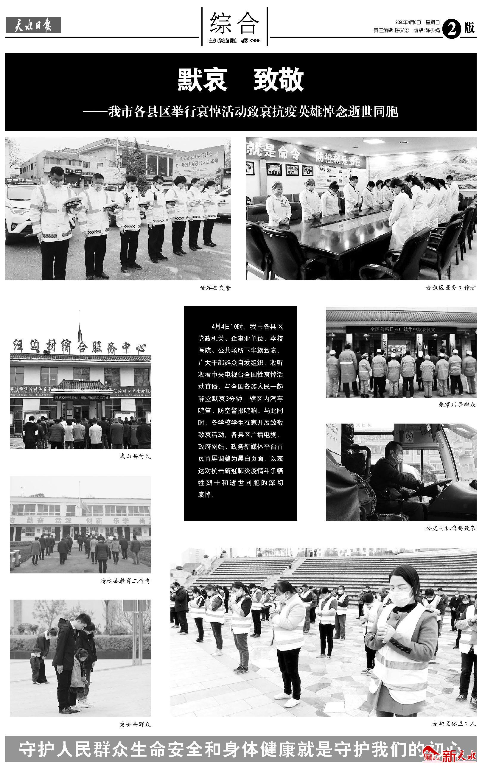 天水市各县区举行哀悼活动致哀抗疫英雄悼念逝世同胞