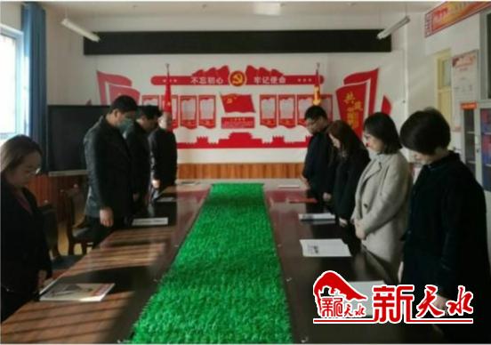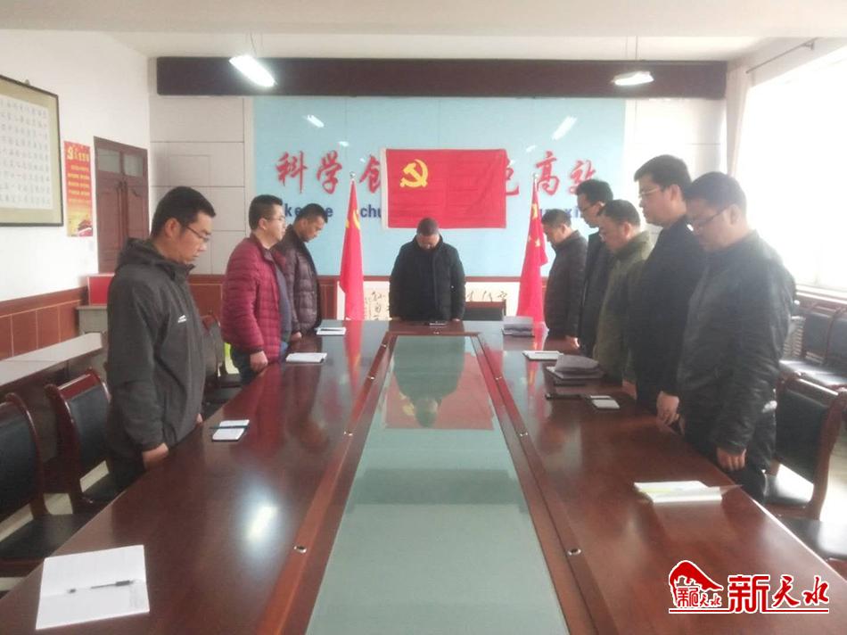 甘谷县新兴初级中学部分教职工代表现场垂首默哀