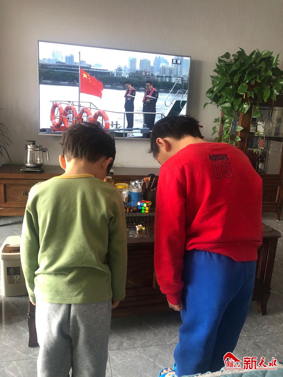 甘谷县礼辛镇礼辛中心小学学生在家垂首默哀