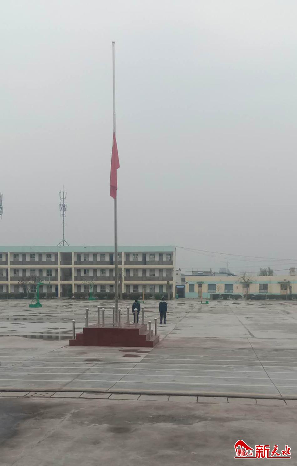 甘谷县磐安学区各学校下半旗志哀,部分教职工代表现场垂首默哀