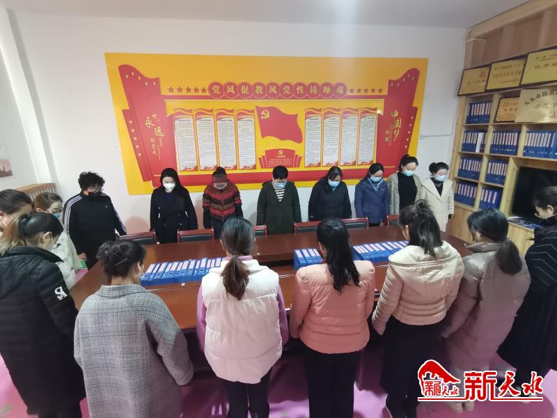 甘谷县第二幼儿园部分教职工代表现场垂首默哀