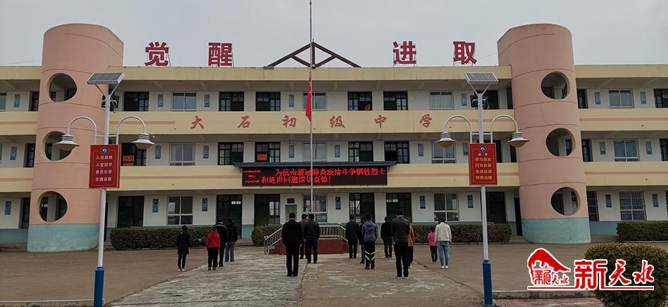 甘谷县大石初级中学下半旗志哀,部分师生代表现场垂首默哀