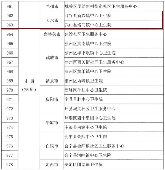 “优质服务基层行”出成果 甘肃25家基层医疗卫生机构受到国家卫健委通报表扬记者今天(4月7日)从省卫生健康委获悉,国家卫生健康委办公厅近日下发通知,对我省达到“优质服务基层行”推荐标准的25家基层医疗卫生机构进行通报表扬。“优质服务基层行”活动开展以来,甘肃省卫生健康委成立活动领导小组,组织全省1367家乡镇卫生院和212家社区卫生服务中心,按照以评促建,以评促改,评建结合的要求,对标进行逐条梳理,全面提升基层医疗服务能力,全省基层机构自评率达到97.92%,220家基层医疗卫生机构达到基本标准。在具体工作中,我省坚持补齐短板强基础。全省基层医疗卫生机构以活动为契机,积极争取政策和资金支持,不断加强基础设施建设,改善群众就医环境;积极发展专科显特色,规范管理提质量,提高能力抓医疗,如,武威市凉州区黄羊镇中心卫生院不断提高业务水平,医院承担分级诊疗病种从50种提高到110种,能够保障冠心病、肺心病、上消化道出血、脑梗塞等疑难危重病种的诊疗,能够开展胆囊切除、甲状腺次全切除、胃大部切除术、脾破裂切除等手术。同时,我省还创新模式树品牌,如兰州市城关区团结新村社区卫生服务中心打造“康乐荣养”医养品牌,将家庭医生签约、网格化服务与智慧养老深度融合并相互支撑。与城关区民政局智慧养老服务平台(虚拟养老院)共同合作,逐步探索出“医疗服务+日间托养+居家养老”复合型服务机制。2019年中心日间照料860人,日间托养27人。在人才强院促发展方面,陇南市宕昌县沙湾卫生院,采取职工培训与绩效工资挂钩的措施,有效提高职工培训积极性,医院在职卫生技术人员培训率达到了90%以上,卫生技术人员的学历70%达到专科以上。其中,甘肃受到通报表扬的25家基层医疗卫生机构名单: