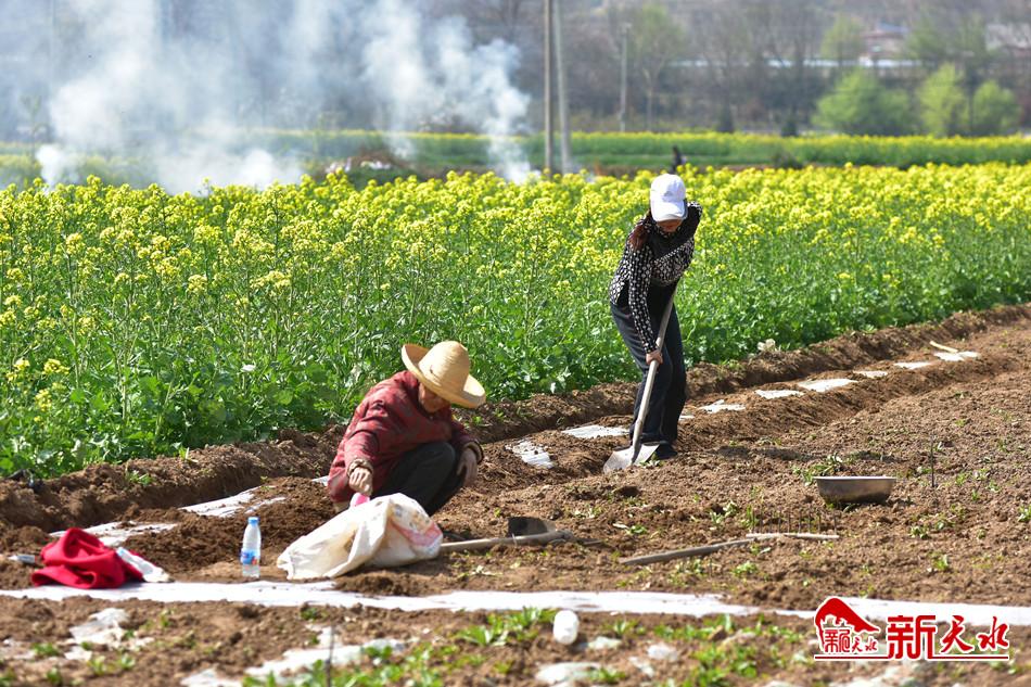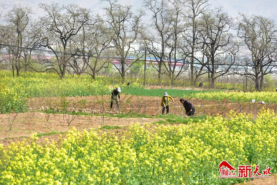 4月9日,麦积区渭南镇农民正在田间劳作。当前正值春耕备耕时节,我市在做好疫情防控的同时,早动手、早准备,多措并举抓好春季麦田管理和春耕备耕,为全年粮食生产打好基础。(新天水·天水日报记者 周文涛 摄)
