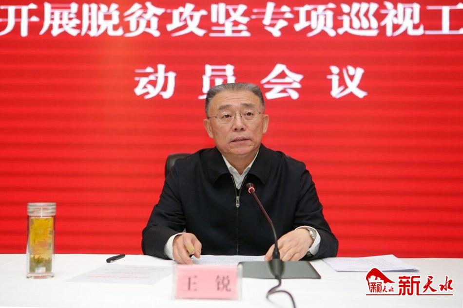 王锐表示,省委第六巡视组到天水开展脱贫攻坚专项巡视,这既是对我市各级党委(党组)落实脱贫攻坚主体责任、推动脱贫攻坚工作任务落实的一次“政治体检”,也是对我市决战决胜脱贫攻坚工作的一次“全面审视”,更是对全市党员干部纪律作风的一次“综合检验”,必将对我们把准最后阶段脱贫攻坚工作方向、补齐短板弱项、冲刺清零各类问题、夺取脱贫攻坚最后胜利产生重大的推动作用。全市各级党政组织要进一步提高政治站位,深刻认识专项巡视的重要性、必要性和严肃性,切实增强接受巡视监督、支持巡视工作的政治自觉、思想自觉和行动自觉,着眼大局、敞开胸襟,主动接受巡视、自觉接受检查、诚恳接受监督,认真做好配合巡视各项工作。要严守政治纪律、组织纪律、巡视纪律和保密纪律,坚决服从巡视组工作安排,认真完成巡视组交办任务,全面落实巡视组工作要求,积极主动协助配合巡视组全面了解和准确掌握我市脱贫攻坚工作的相关情况,以利于我们把脱贫攻坚工作做得更好、更富成效。要充分运用和转化好巡视成果,照单全收、主动认领巡视组反馈的问题和提出的意见建议,立行立改抓整改、举一反三抓整改、紧盯重点抓整改、压实责任抓整改,切实做到有什么问题就解决什么问题、什么问题突出就重点解决什么问题,确保各类问题整改到位、清零见底,以此来提高脱贫攻坚进度、质量和成色。全市各级各部门要把支持配合巡视工作作为一项政治任务来落实,主动对接、细致服务,优质高效做好协调联络、资料提供、调研走访、服务保障等相关工作,努力为巡视组开展巡视检查创造良好环境、提供有力保障。