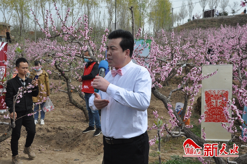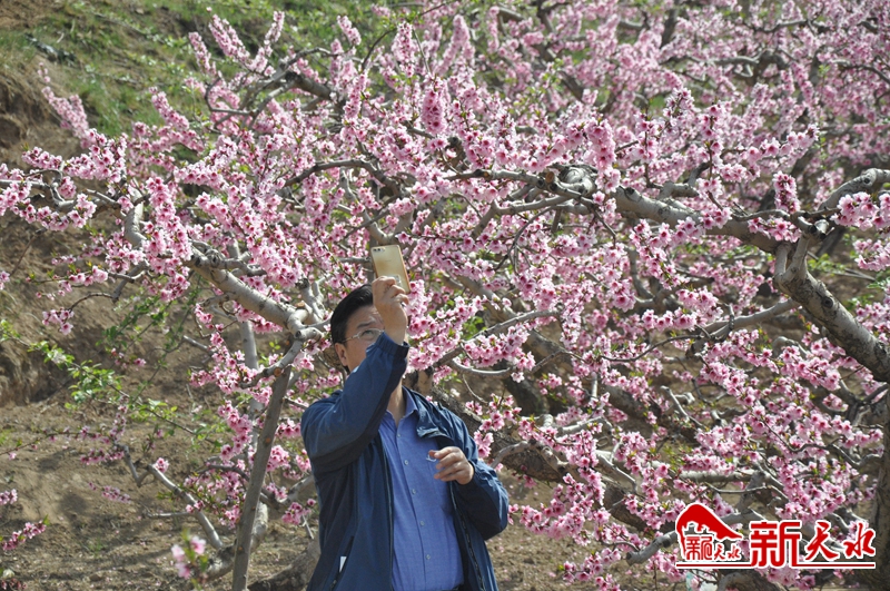 新天水讯【记者 刘晓亚】4月15日,以“云游美丽田园,欣赏桃花美景,预订秦安蜜桃”为主题的2020年秦安县“云上桃花会”在刘坪镇何湾主景桃园举行第二次主题活动。