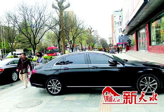 新天水讯【天水日报记者 孙燕芸】4月13日下午,一辆轿车停放在市新华书店旁的人行道上,行人只能从车后绕道而行。