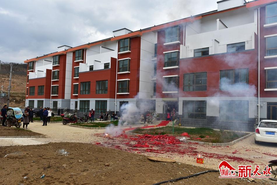 从柏海龙家出来,突然听到一阵密集的鞭炮声。镇党委书记吕咏星告诉记者,这可能是今天有搬新房的人家“入烟”。循着鞭炮声,记者来到汪川新村C10栋楼前,只见房主人柏九曲和妻子李清叶在热情地迎接前来“入烟”的亲朋好友,亲友们道贺的鞭炮和礼花不时在门口燃响,将喜庆的气氛蔓延到整个汪川新村。