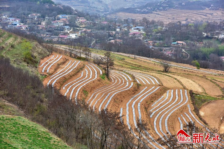 双集村乌龙头基地规划面积达5000多亩,为顺利推进项目实施,镇上对双集、旗沟、石沟三村的山地进行了整体流转,并依托土地整理项目进行梯田化建设。站在双集梁顶,极目望去,层层叠叠的梯田、梯田中一行行泛着白光的地膜,以及田间栽植乌龙头苗的群众,构成了一幅美丽的春日画卷。