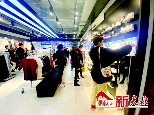 商场内的品牌运动服饰吸引了许多消费者