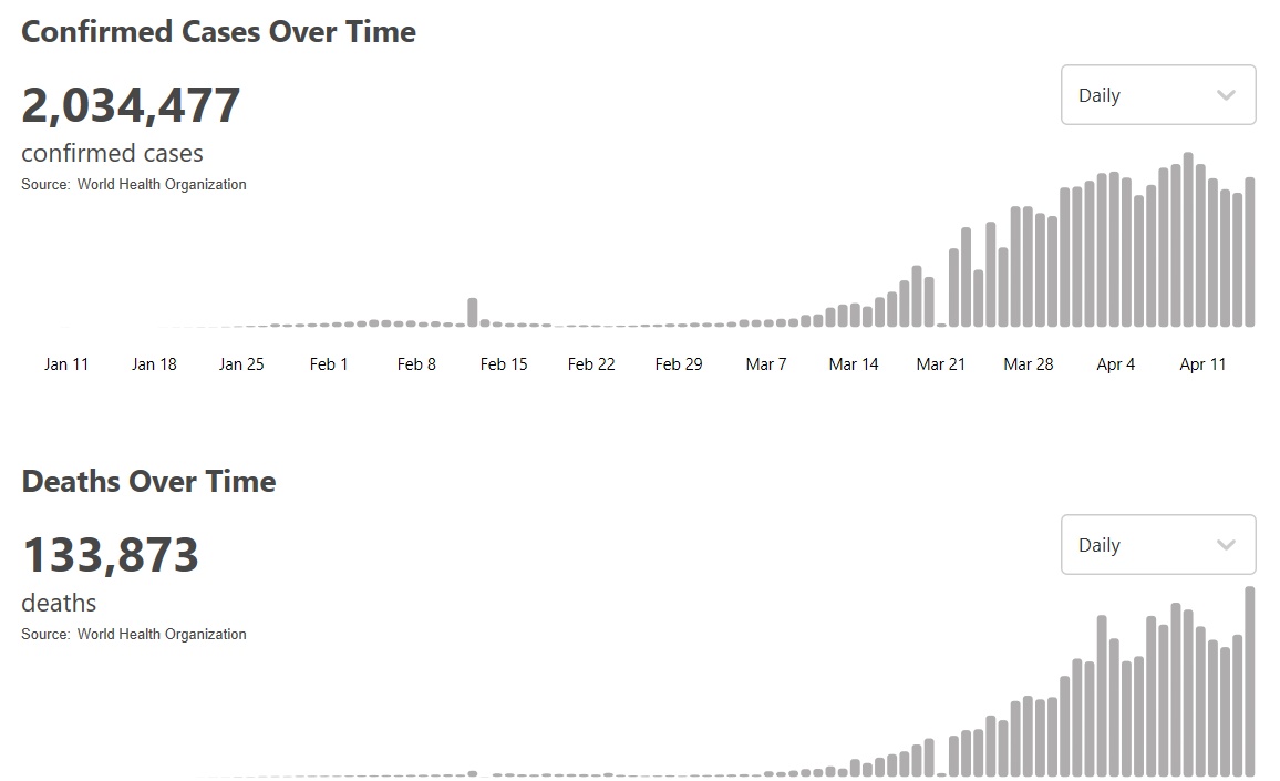 世卫组织:全球新冠肺炎确诊病例超过203万例