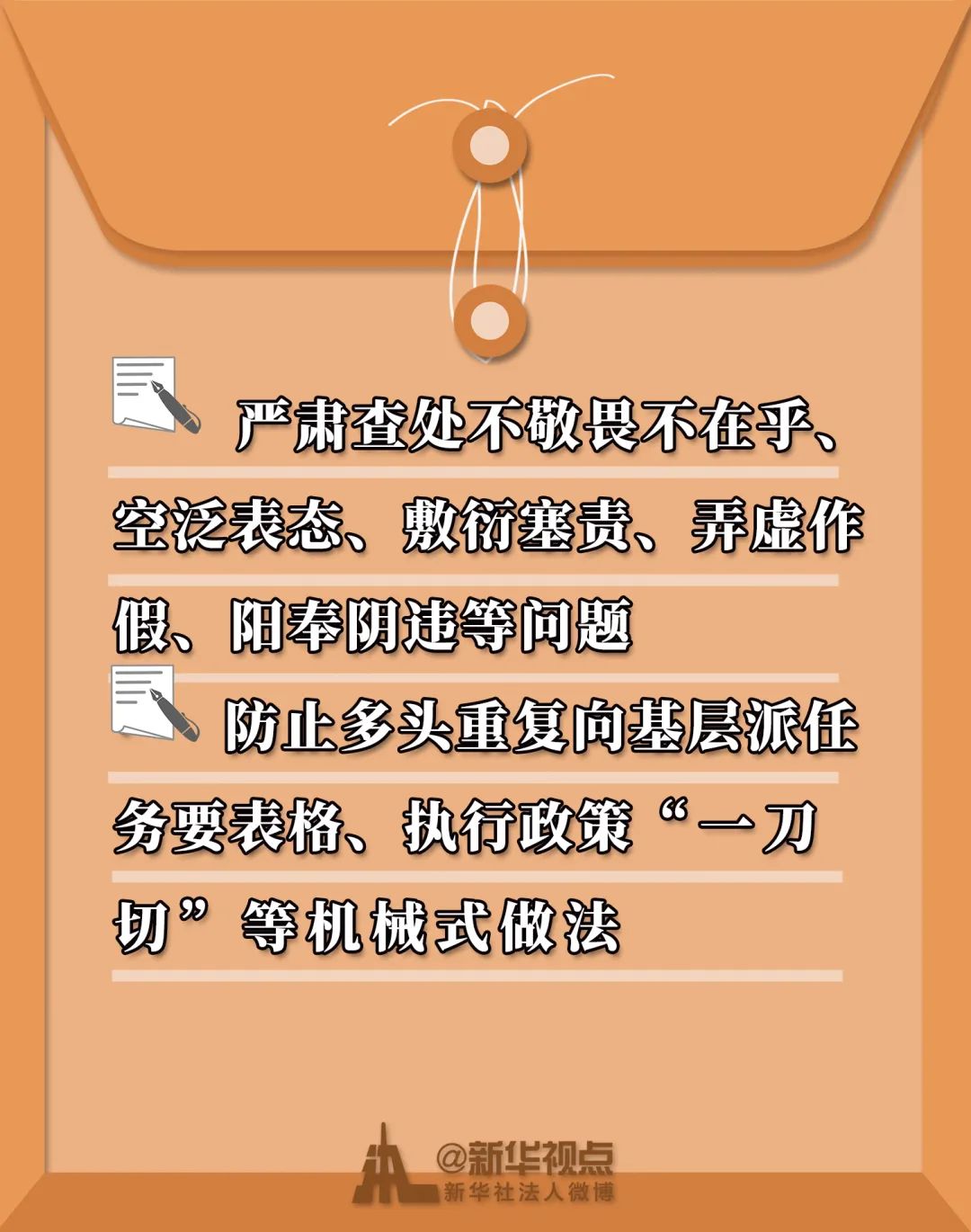 针对文山会海、督查检查考核、调查研究继续做减法,帮助基层干部搬掉形式主义“绊脚石”。不少基层干部说,去年以来,解决基层形式主义问题、为基层减负已经深入人心,基层实实在在的获得感多了,也有更多精力投入实实在在的工作。但在一些地方,不担当不作为、推诿扯皮、报喜不报忧等基层形式主义问题仍然顽固,甚至一些形式主义现象改头换面、隐形变异,出现发文件红头改白头、正式改便笺等新动向新表现,甚至出现用“形式主义解决形式主义”的问题。这说明形式主义、官僚主义是一个顽症,不可能毕其功于一役,需要“持之以恒”“久久为功”。