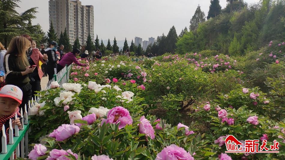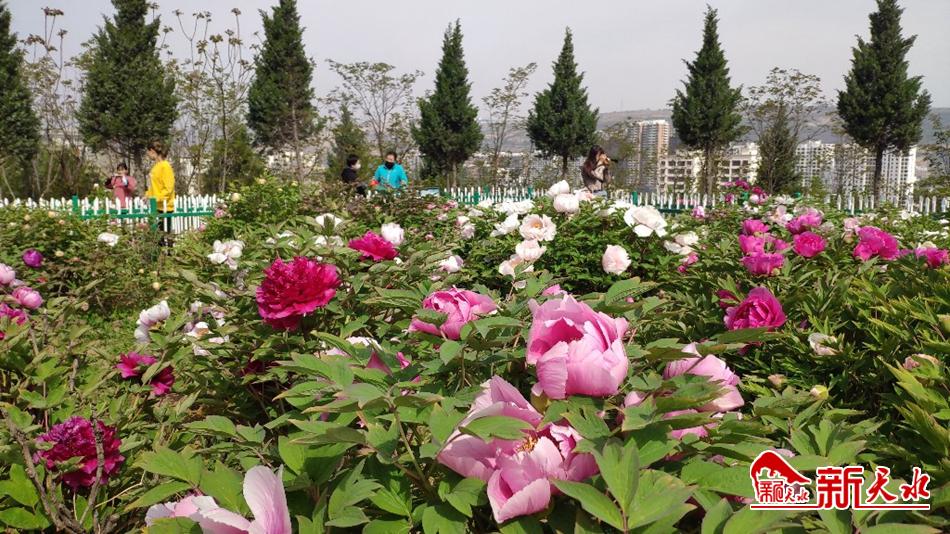 4月22日,市民在天水南山豹子沟牡丹园里赏花游园。四月下旬,牡丹园的牡丹已花开成海,园中游人如织,眼底华丽的色彩美不胜收。行至园中,空气中夹杂的牡丹花香,沁人心脾。新天水•天水日报记者 陈少娟 摄