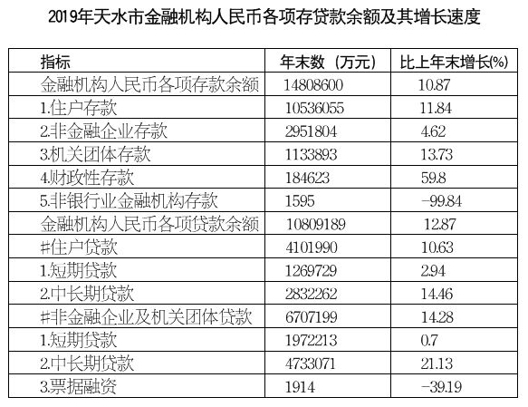 4.资料来源:本公报中物价和居民收入消费数据来自国家统计局天水调查队;城镇登记失业率、城镇新增就业人员和社会保障数据来自天水市人力资源和社会保障局;财政数据来自天水市财政局;进出口数据来自天水市商务局;交通运输数据来自天水市交通运输局、天水市公安局交警支队;通信数据来自天水市工信局;邮政数据来自天水市邮政管理局;棚户区改造和农村地区建档立卡贫困户危房改造数据来自天水市住建局;林业数据来自天水市林草局;艺术表演团体、文化馆、公共图书馆、博物馆、广播电视和旅游数据来自天水市文化和旅游局;接待入境过夜游客数据来自天水市出入境管理局;金融数据来自中国人民银行天水中心支行;保险数据来自天水市保险协会;城乡低保数据来自天水市民政局;教育数据来自天水市教育局;科技数据来自天水市科技局;卫生数据来自天水市卫生健康委员会;体育数据来自天水市体育局;安全生产数据来自天水市应急管理局;环境监测数据来自天水市生态环境局。