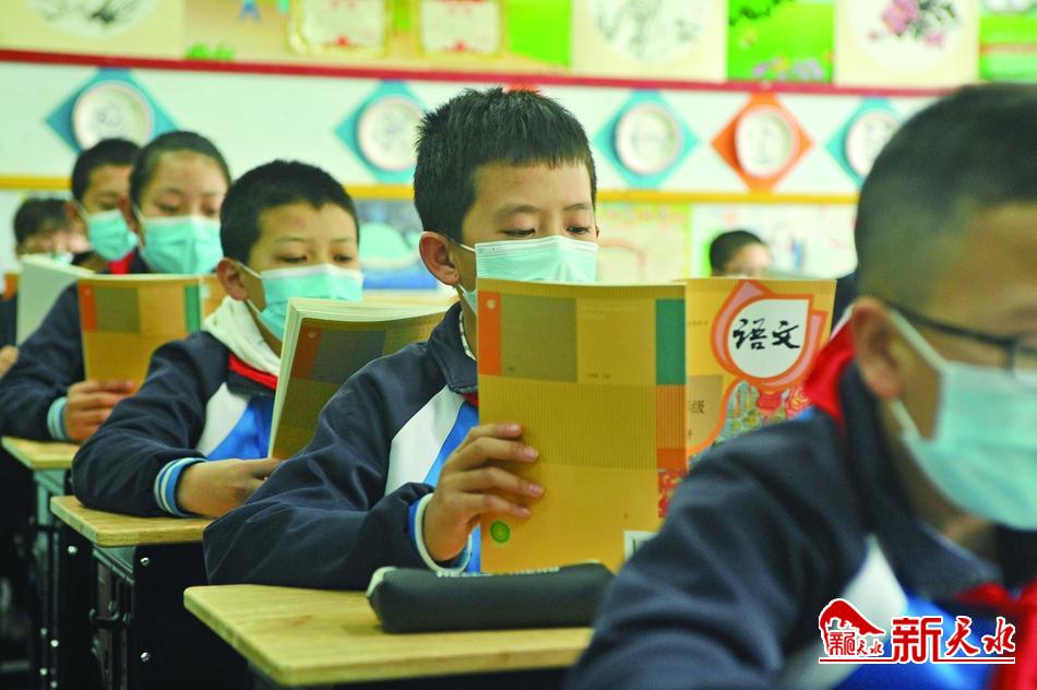 ▲孩子们戴着口罩,读书声依然清朗。