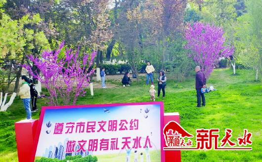 新天水讯 近日,阳光明媚,市民在秦州区人民公园的草地上游玩。希望广大市民爱护花草,踏青请勿“踩青”,做文明市民。(冰帆)