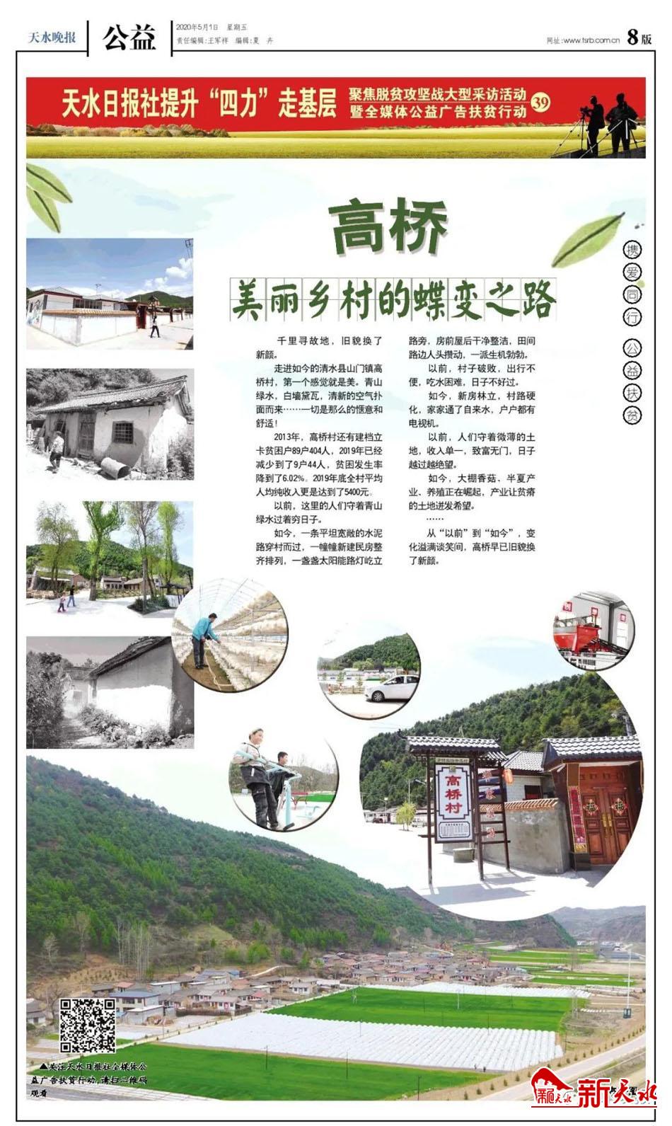 新天水讯【天水日报记者胡丽霞 王雪梅】绿草茵茵、花香阵阵、清水涧涧、炊烟袅袅,虽然春天接近了尾声,然而位于林缘区的清水县山门镇高桥村的“春天”仿佛才欣欣然张开了“眼”。4月23日,胡建峰又要离开阔别了7年的家外出打工,他竟然怅然若失,有些依依不舍。