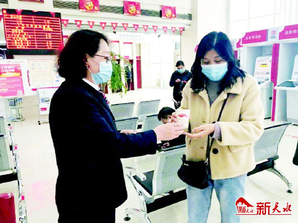 ▲工行天水分行营业室工作人员为客户服务