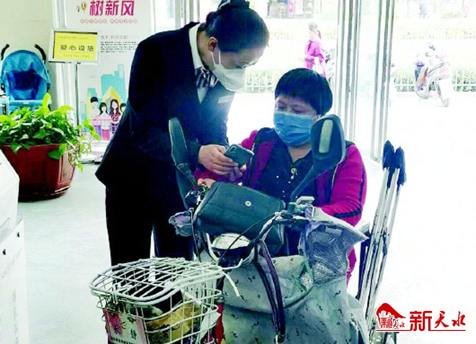 ▲工行秦州支行工作人员为行动不便客户服务