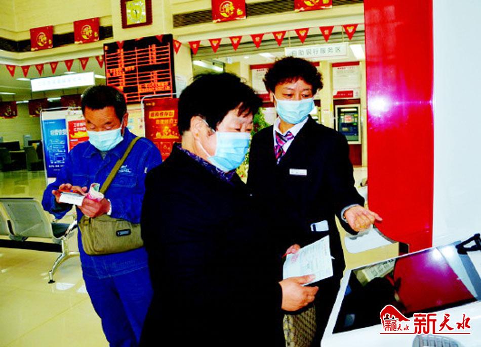 ▲工行天水分行营业室工作人员指导客户操作