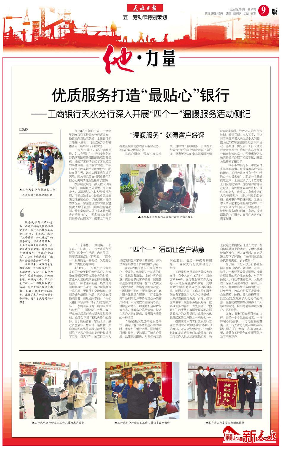 【五一特辑】优质服务打造“最贴心”银行——工商银行天水分行深入开展“四个一”温暖服务活动