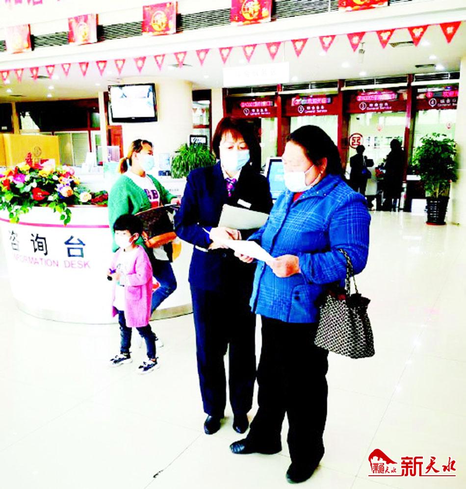 ▲工行天水分行营业室工作 人员为客户解答疑难问题