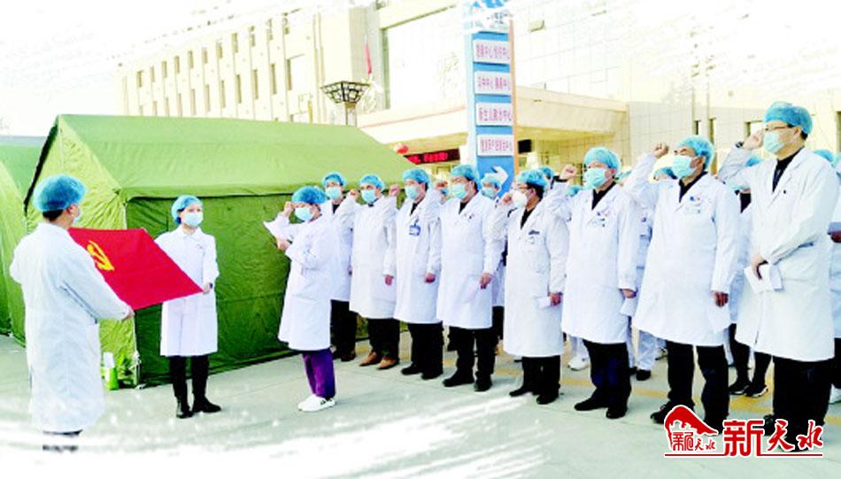 新冠肺炎疫情来势汹汹,面对疫情,医院党委立即成立了三个临时党支部,全体医护人员主动请战,奔赴防疫一线,以身为盾,守护百姓健康。