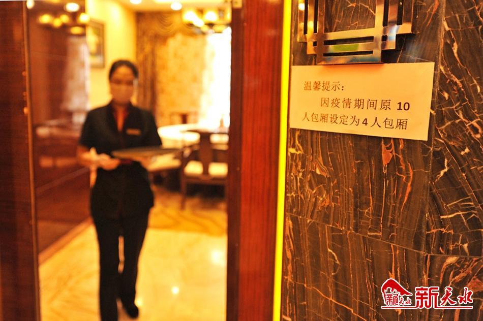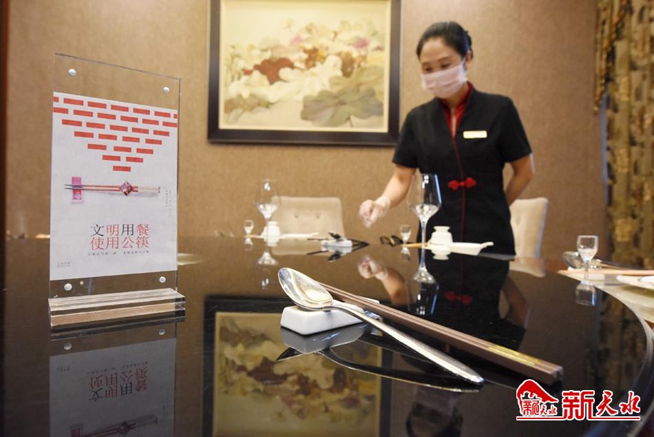 近日,记者走访了我市几家酒店,在减少座椅数量,扩大用餐间距的同时,普遍使用公筷公勺。服务员会向顾客说明公筷公勺使用方法,倡导文明用餐。