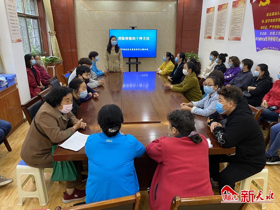 5月6日下午,社区组织40多名母亲举办了《消除抑郁的十种方法》,提醒女性重视自己的心理健康,引导女性直面“负面”情绪,学习如何和情绪和谐共处,学会释放压力。