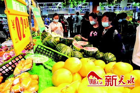 5月1日9时许,位于甘谷县城的客都生活超市,记者看到,在超市工作人员的积极疏导下,消费者有序采购着新鲜果蔬及生活用品。记者注意到,在超市门口两侧,每天的优惠商品都清晰地列出明细,同时,在超市里,各区域也都能看到促销的商品。