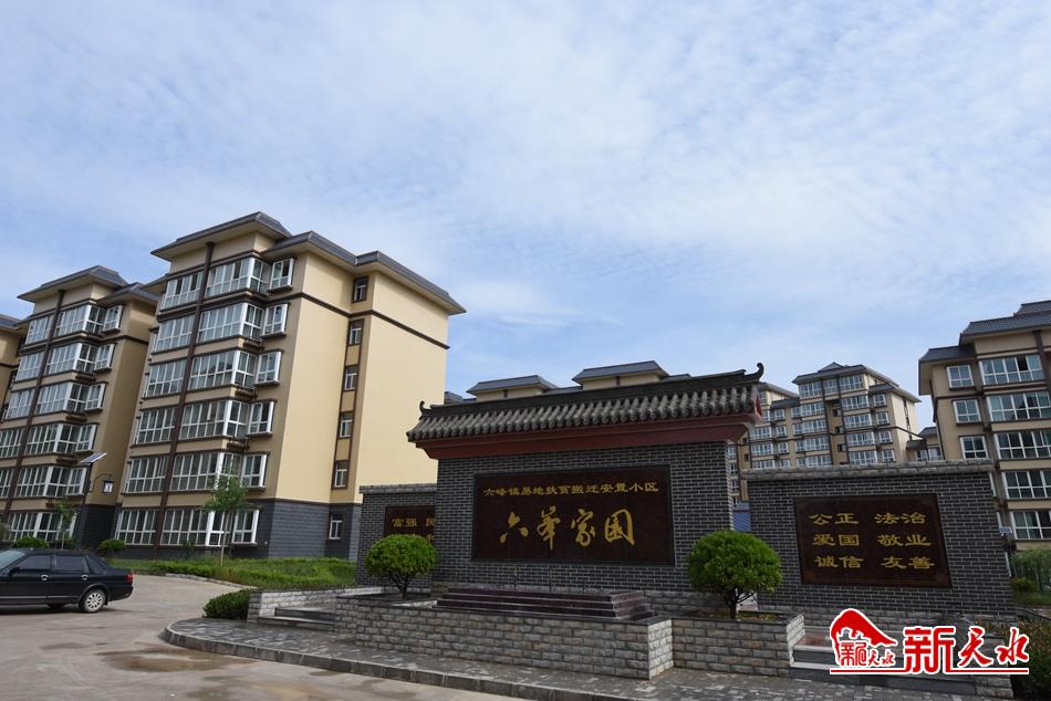 雨后的六峰镇六峰家园易地扶贫搬迁安置点一栋栋黄白相间的高楼整齐矗立,宁静祥和,小区院内草坪嫩绿,树木青葱。安置点居民杨淑梅正坐在沙发上给小孙子喂早饭。落地窗外,雨后的阳光透过云层,暖暖地洒在光滑的地板上。