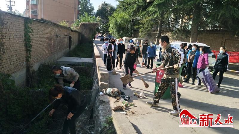 新天水讯 为提高辖区居民的生活环境水平,营造一个洁净舒适的生活环境,5月13日上午,东十里社区新时代文明实践站组织开展辖区家属院卫生大整治活动,社区干部及志愿者共50余人参加。