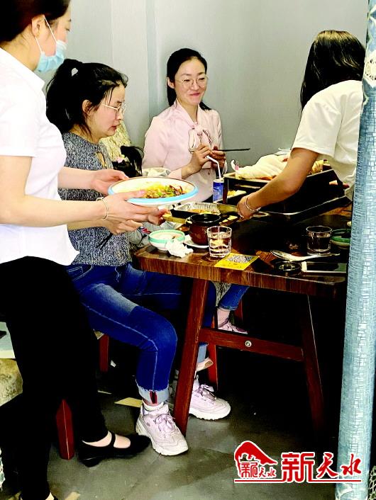 来到刘阿姨所说的小厨炒菜商铺门口,聂阿姨一家人首先被门口处摆放着的一个大型瓦罐吸引了眼球。一位服务服务员正拿着一个长长的火钳子夹出来一个个小瓦罐放入碟子中。出于好奇,聂阿姨询问店员瓦罐里装着的是什么,店员解释说是甲鱼汤,大型瓦罐其实就是一个烤炉,厨师一大早会熬好甲鱼汤盛入小瓦罐里,然后再放入大瓦罐里,客人点餐后随时拿出来都是热乎乎的。走进这家小炒店里,点餐方式也让聂阿姨和家人感慨万分。聂阿姨说:“以前去饭店点餐是自己拿张纸写上菜名,后来是顾客点菜店员记菜名,现在点餐多是店员会给顾客一个iPad点击菜品,这次点餐让人觉得又不一样了,直接用微信扫一扫餐桌上的二维码进入微信小程序后点餐,点完餐后可以直接结账,感觉真的是越来越方便,越来越人性化了。”