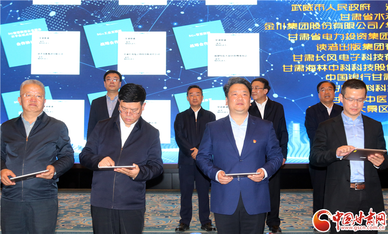 近年来,按照习近平总书记重要指示和党中央、国务院决策部署,我省抢抓“一带一路”倡议最大历史机遇和新一轮科技革命、产业变革战略机遇,抢占信息制高点,全力打造“一带一路”信息高地,抢抓甘肃发展先机,在不同阶段,并行推动“三化”改造提升传统产业、区块链平台建设和创新应用、5G、工业互联网建设等三个方面重点工作,取得了阶段性成效。近期,出台《甘肃省5G建设及应用专项实施方案》,聚焦5G网络建设和5G在工业互联网、大数据服务、智慧园区、智能工厂等应用场景,建立了5G/区块链融合应用动态项目库,涉及项目108个,总投资301亿元,其中2个5G基础设施项目、总投资207亿元,106个5G/区块链+项目、总投资94亿元,一批项目已经成熟,今天举行的签约仪式,签订了包括总投资71亿元的5G基础设施建设项目和总投资88亿元的5G/区块链+项目。