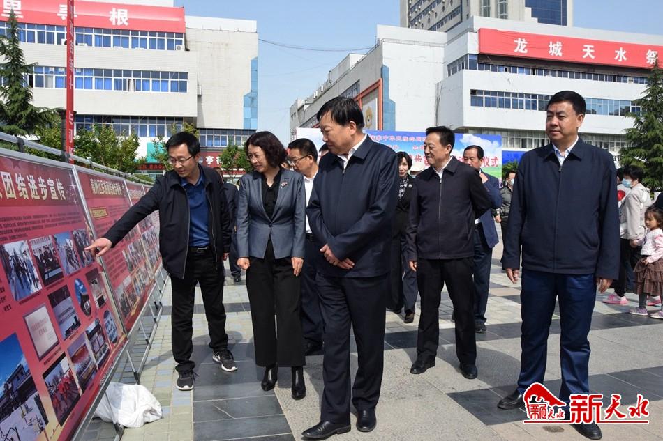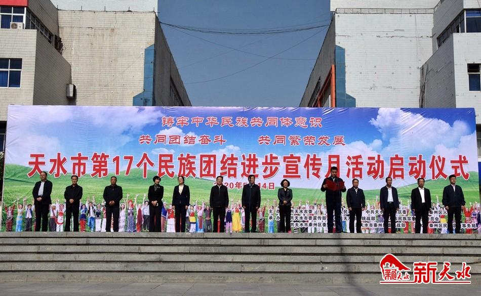 新天水讯【天水日报记者李欣桐】5月14日,天水市第17个民族团结进步宣传月活动启动仪式在龙城广场举行。市委常委、秦州区委书记雷鸣宣布天水市第17个民族团结进步宣传月活动启动,市委常委、统战部部长王燕作动员讲话,市人大常委会副主任宋建平、市政协副主席高媛瑾出席启动仪式,副市长逯克宗主持启动仪式。