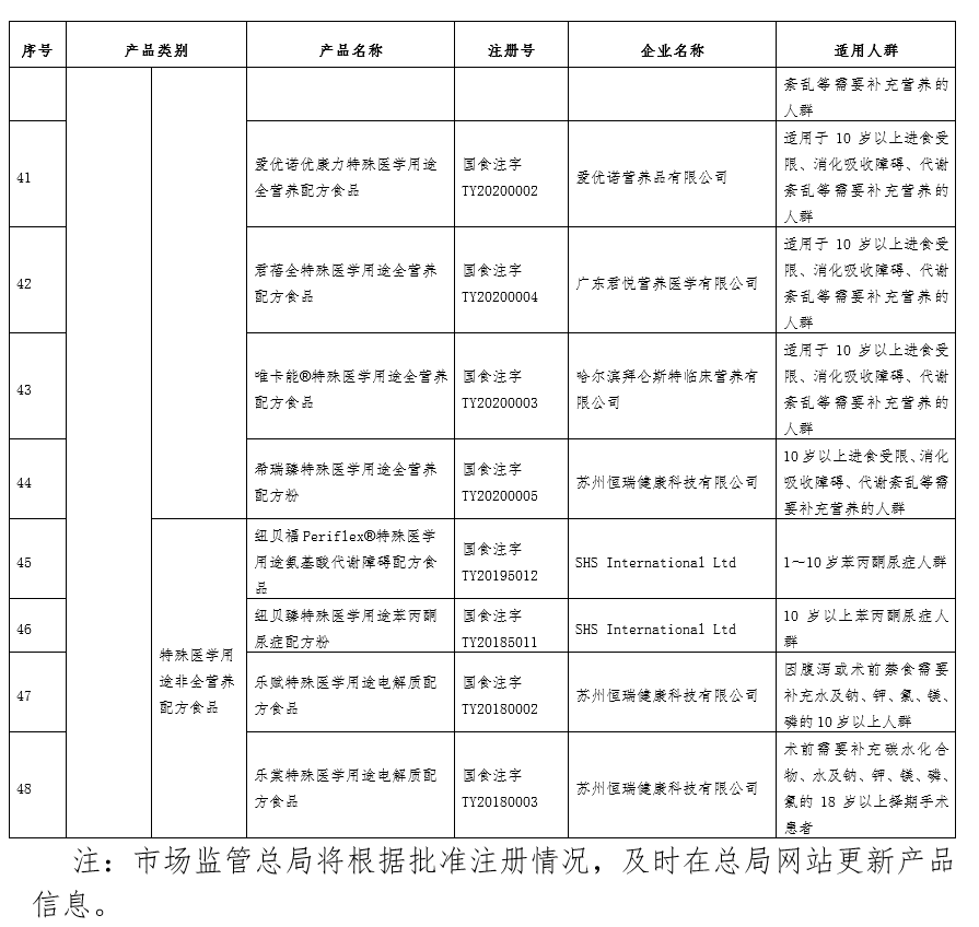 国家市场监管总局:经审批的特殊医学用途配方食品共48个