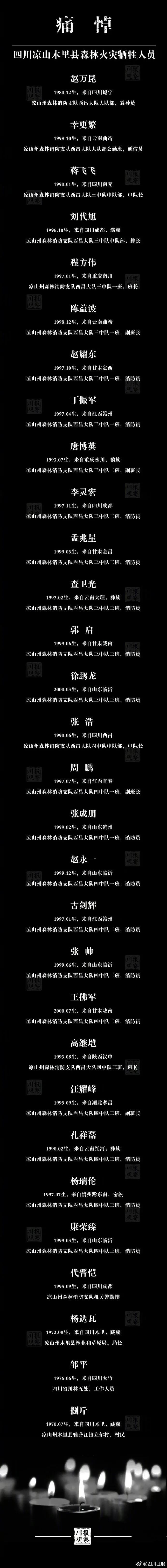 青春刚刚登场,话语犹在耳旁,孩子即将出生,父母淹没于泪水。青山忠诚的卫士,危难的永恒对手,投身一场大火,长眠在木里河两岸,你们没有走远,看那凉山上的秋叶,今年红得分外惹眼。感动中国2019年度人物——四川木里森林扑火勇士。