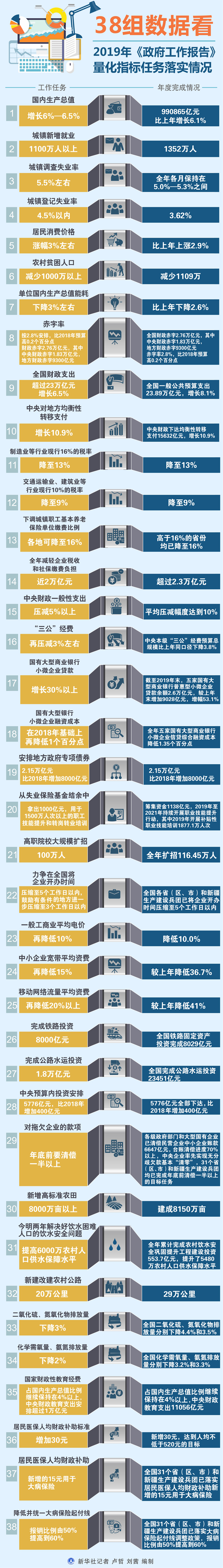 国务院公布2019年《政府工作报告》量化指标任务落实情况