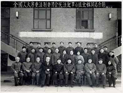 “经过10个月的辛勤工作,1980年8月,大家草拟出了一个民法草案‘试拟稿’,并开始向部分经济单位和政法部门征求意见。这个草案包括总则、财产所有权、合同、劳动报酬和奖励、损害责任、财产继承共六编,计501条。后来我们又修改了三次,到1982年5月形成了第四稿。”