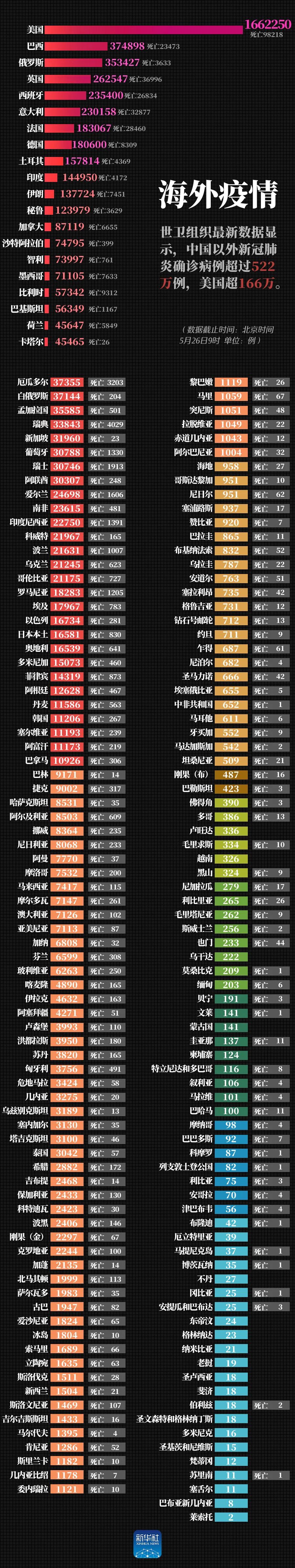 最新!美国超166万例,中国以外确诊病例超过522万例