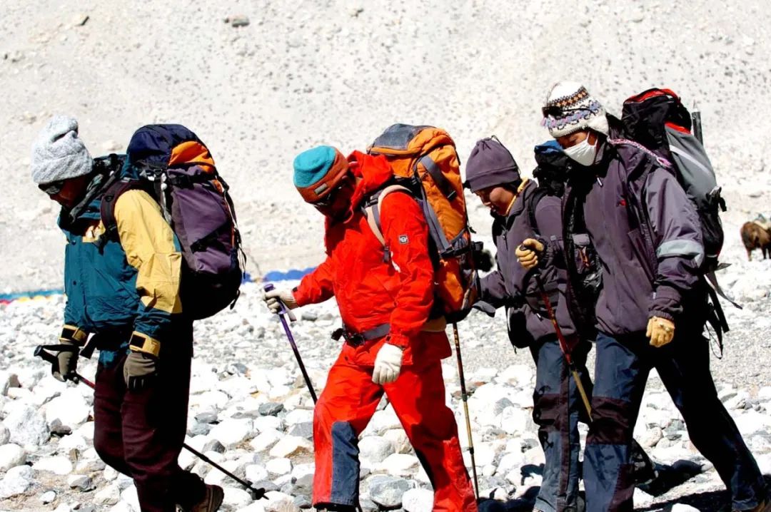 2005年4月18日,承担珠峰复测登高测量队员从海拔5200米的大本营前往更高的营地。新华社发