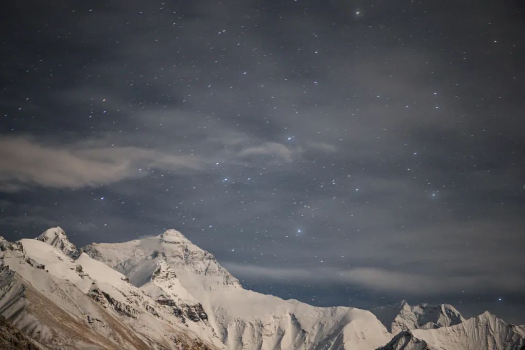 夜晚的珠峰,浮云间繁星点点(5月1日摄)新华社记者 孙非 摄