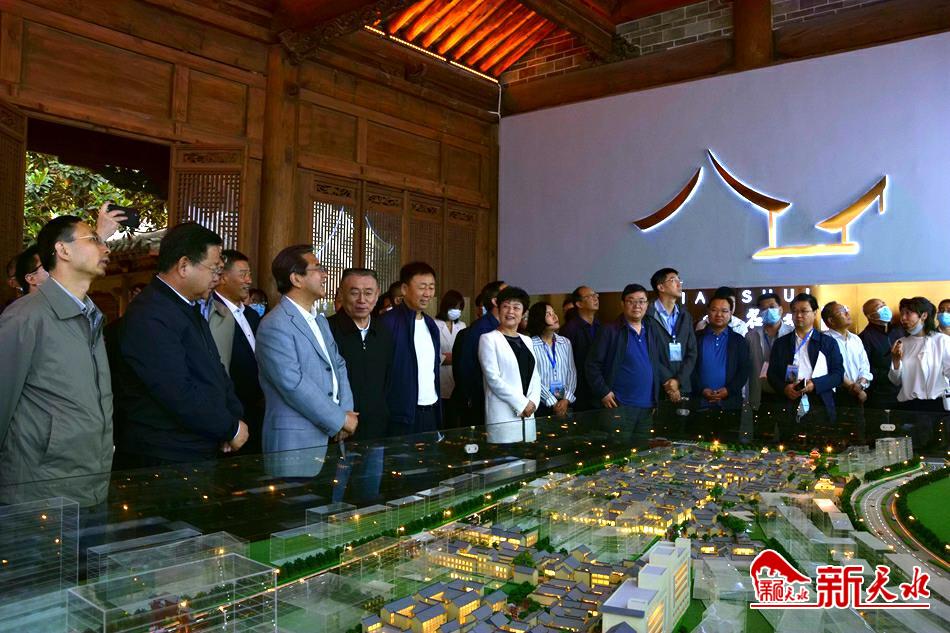 会前,省政协副主席、天水市委书记王锐与参会代表一同观摩了天水古城西关片区综合保护与利用项目和天水大剧院暨《天水千古秀》、天水雕漆文化博览园、麦积山景区游客服务中心、天水•白鹿仓国际旅游度假区、青鹃山国际休闲旅游度假区等文旅项目。